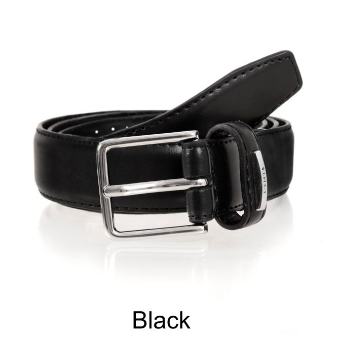 Mens Plain Leather belt with a single leather keeper. Stitched edge design and a shiny silver coloured buckle.