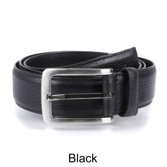 Mens Textured Leather belt with a single leather keeper. Stitched edge design and a satin silver coloured buckle.